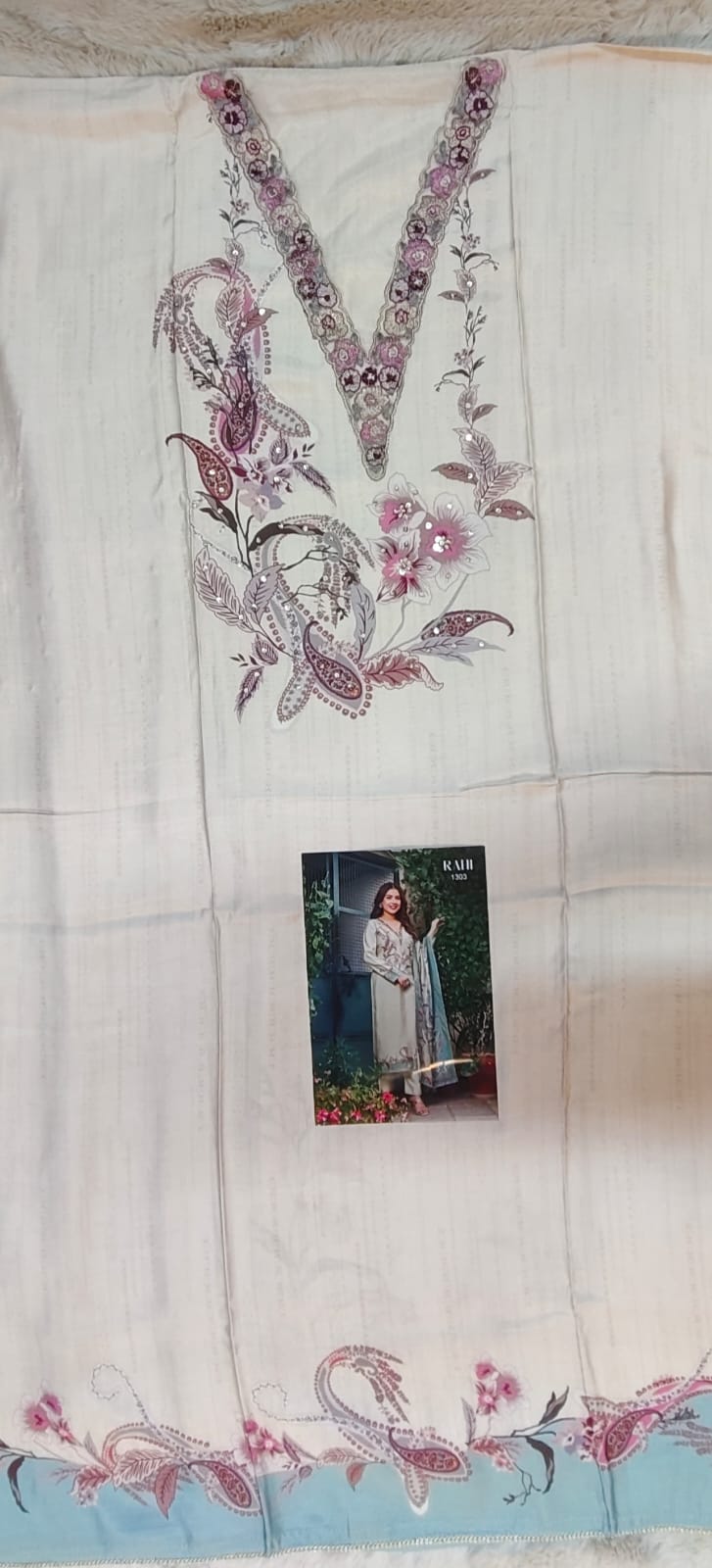 | Top: | Muslin Digital Printed Heavy Embroidery V Neck Patch Stich Heavy Handwork On Tai Works |